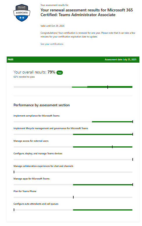 Well… not 100% flawlessly! 😅 While preparing for the renewal assessment, I discovered many new features and updates in Microsoft Teams—especially around management and governance. These changes reminded me that staying current is a continuous journey.